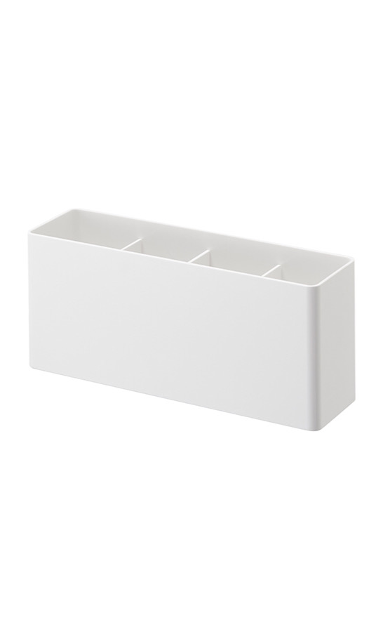 『 tower( タワー )マグネットストレージボックス ワイド 』は磁石が付く場所に取り付けられる収納ボックス。冷蔵庫に付けてラップやホイル、調味料類を入れたり、ユニットバスに設置すれば洗顔料などをまとめておくことも。きれいに並べられる仕切り付きで、付属のフックで小物類が掛けられるのも◎。空間になじむシンプルなデザインで、キッチンやサニタリーなど様々な場所で活躍します。