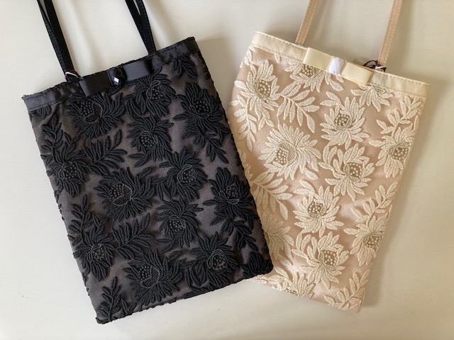 花柄レースにメタリック糸を施して、甘すぎない雰囲気に仕上げたトートバッグです。開閉口には別地のテープを配し、上品に輝くビジューのようなモチーフを添えています。細身のハンドルも華奢な印象で持ちやすいのもポイント。A4サイズがすっぽりと収納できるサイズなのでちょっとしたお出かけシーンにはもちろん、パーティーや式典などのサブバッグとしても重宝します。